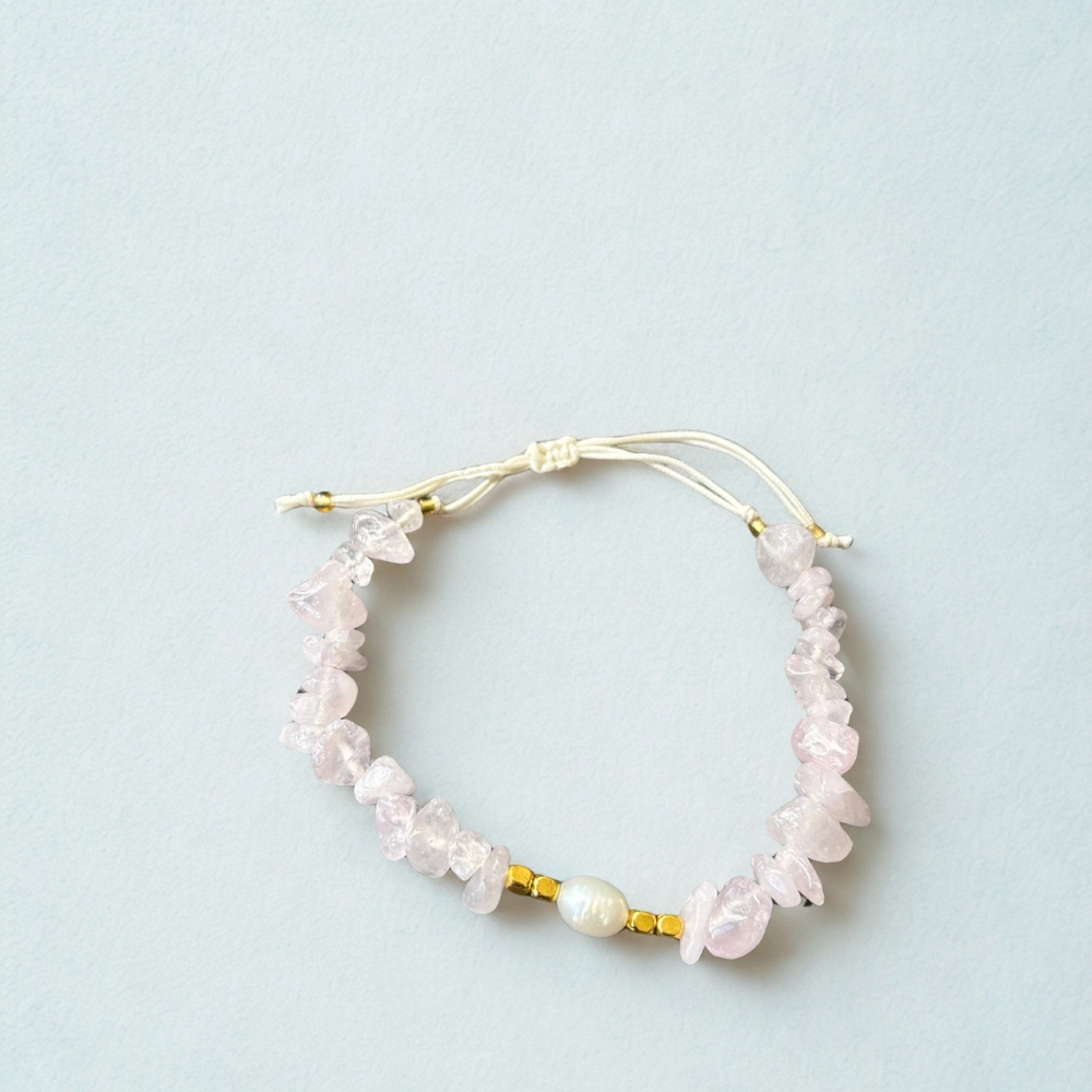 AYUNI – szeretetenergiát sugárzó karkötő rózsakvarccal és igazgyönggyel