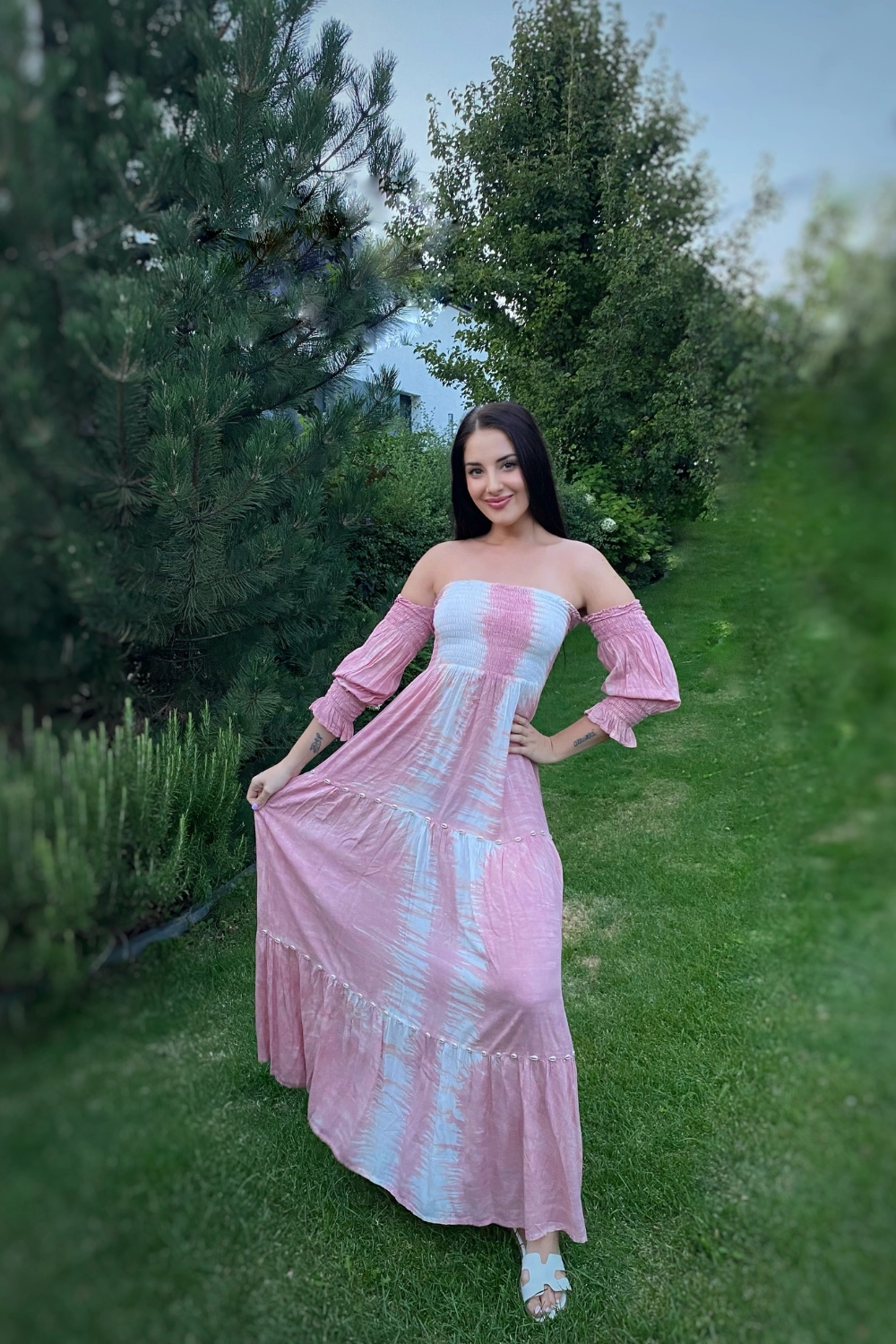 • Pink "Dawn": Its long batiked pattern is adorned with hand-tied shells, creating a bohemian, nature-inspired vibe.
