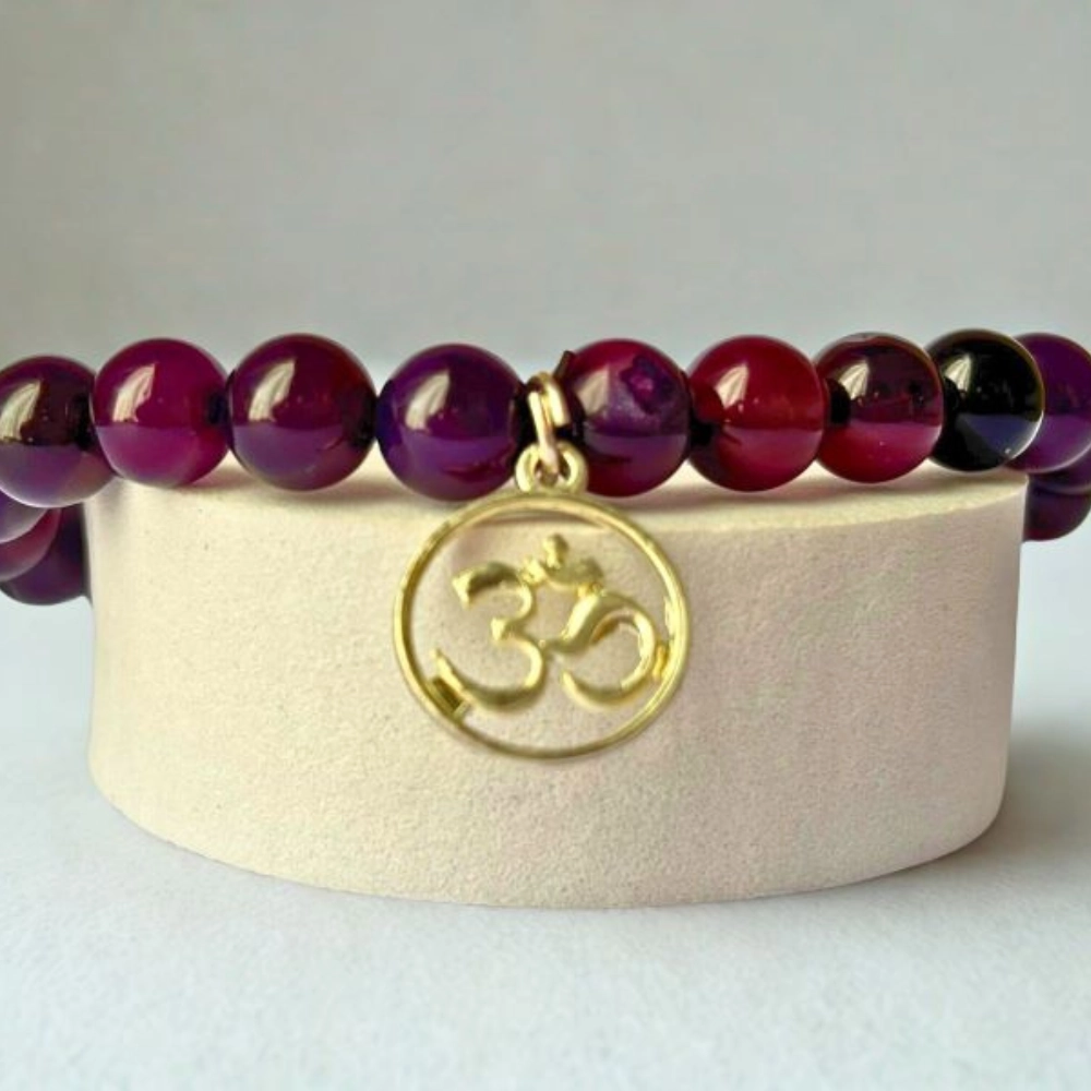 A rozsdamentes acél OM medál a karkötő szíve. Az OM az univerzum alaprezgése, az egység, a tudatosság és a béke szimbóluma. Viselése emlékeztet arra, hogy minden pillanatban kapcsolódhatunk a mélyebb önvalónkhoz és az univerzum ritmusához.