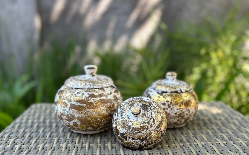 Ajándék, amely szívhez szól Az Auraya tárolószett tökéletes választás ajándéknak, hiszen a három darab együtt a teljességet és a harmóniát jelképezi. Egy ilyen ajándék nemcsak a szépséget viszi el az otthonba, hanem a spirituális jelenlétet is. Ideális meglepetés házavatóra, esküvőre vagy családoknak, akik értékelik az egyedi, kézműves tárgyakat.