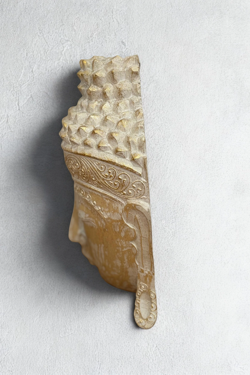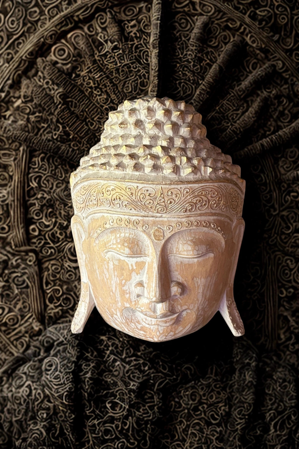 A Zymera fali dísz egy kézzel faragott Buddha fej szobor, amely a nyugalom és a spirituális jelenlét szimbóluma. A lehunyt szemek, a lágy mosoly és az ushnisha mintázata mind a belső béke üzenetét hordozzák.